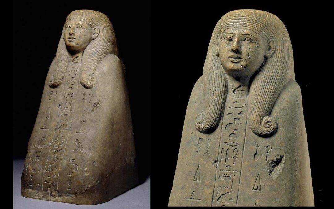 Because these busts typically depicted real individuals, it was uncommon for them to bear hieroglyphic inscriptions—making Muteminet’s bust a rare exception.