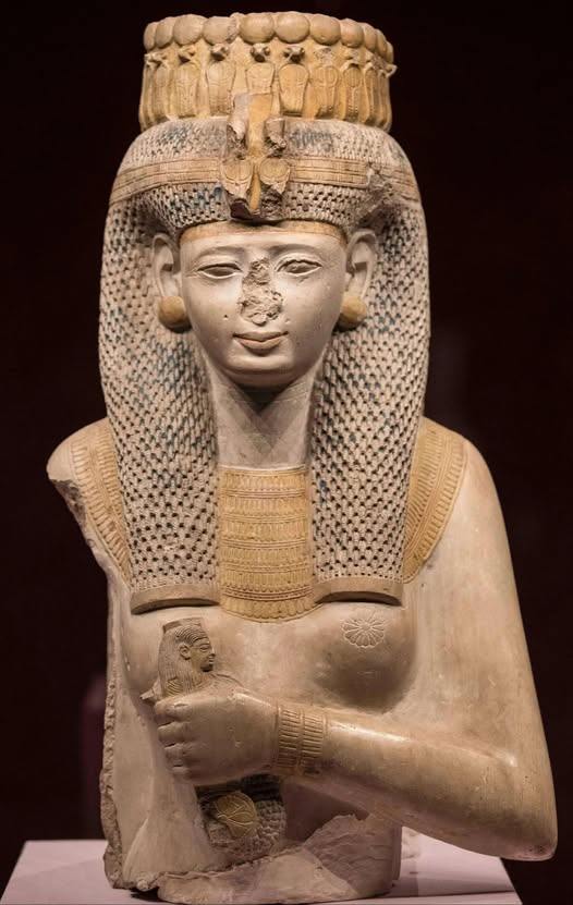 Her images show her wearing elegant gowns, elaborate wigs, and symbolic crowns that emphasize her divine association with the goddess Hathor. Through her religious roles, artistic representations, and political presence, Meritamen stands out as one of the most influential princesses of Egypt’s New Kingdom.