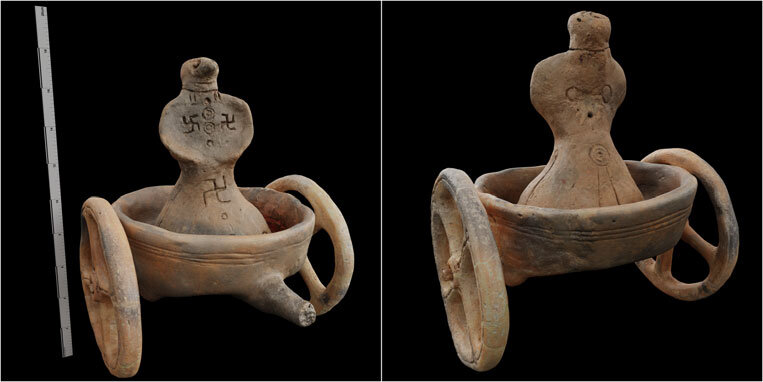 Believed to be over 3,000 years old, the figure depicts a humanoid being seated in what resembles a chariot —an uncommon motif in early art, likely connected to ideas of movement between the human and divine realms .