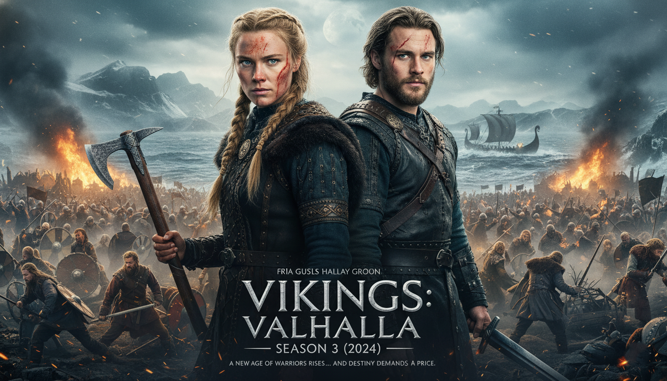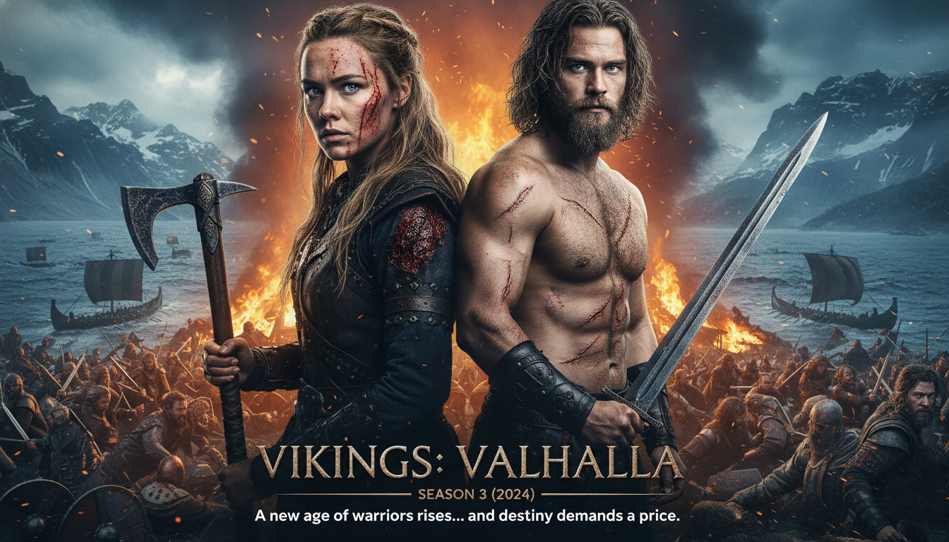VIKINGS: VALHALLA – SEASON 3 (2024) — A new age of warriors rises… and destiny demands a price. | Frida Gustavsson • Sam Corlett