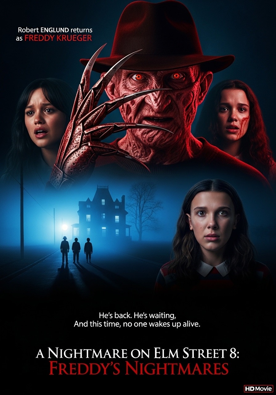 A new era of terror dawns in Springwood. A Nightmare on Elm Street (2025) plunges audiences into a chilling battle between innocence and the supernatural, where the boundary between dreams and reality collapses. Jenna Ortega stars as Elena Harper, a bright, resourceful teenager haunted by visions that begin as nightmares but slowly creep into her waking life. As her friends start disappearing one by one, Elena uncovers the horrifying truth: Freddy Krueger (Robert Englund) has returned, more cunning and sinister than ever, feeding on fear and exploiting every dark corner of the subconscious.