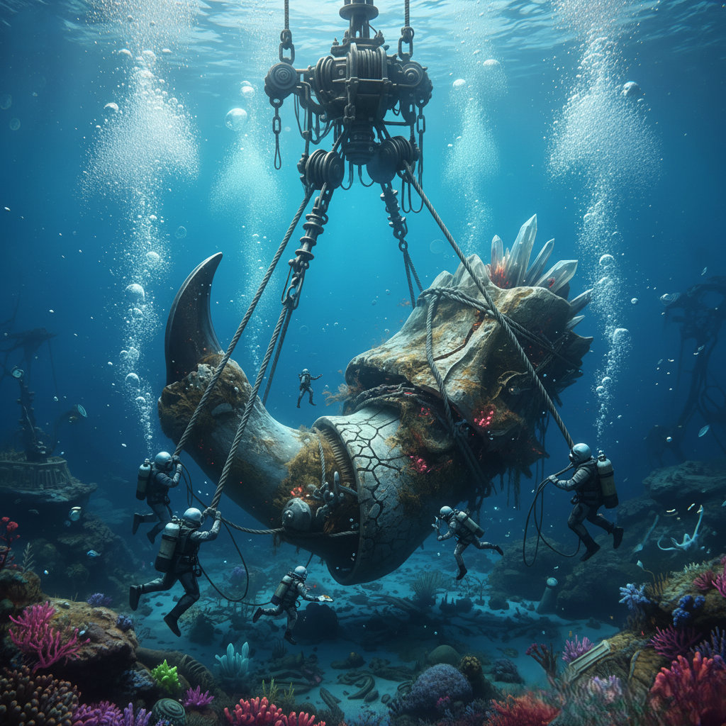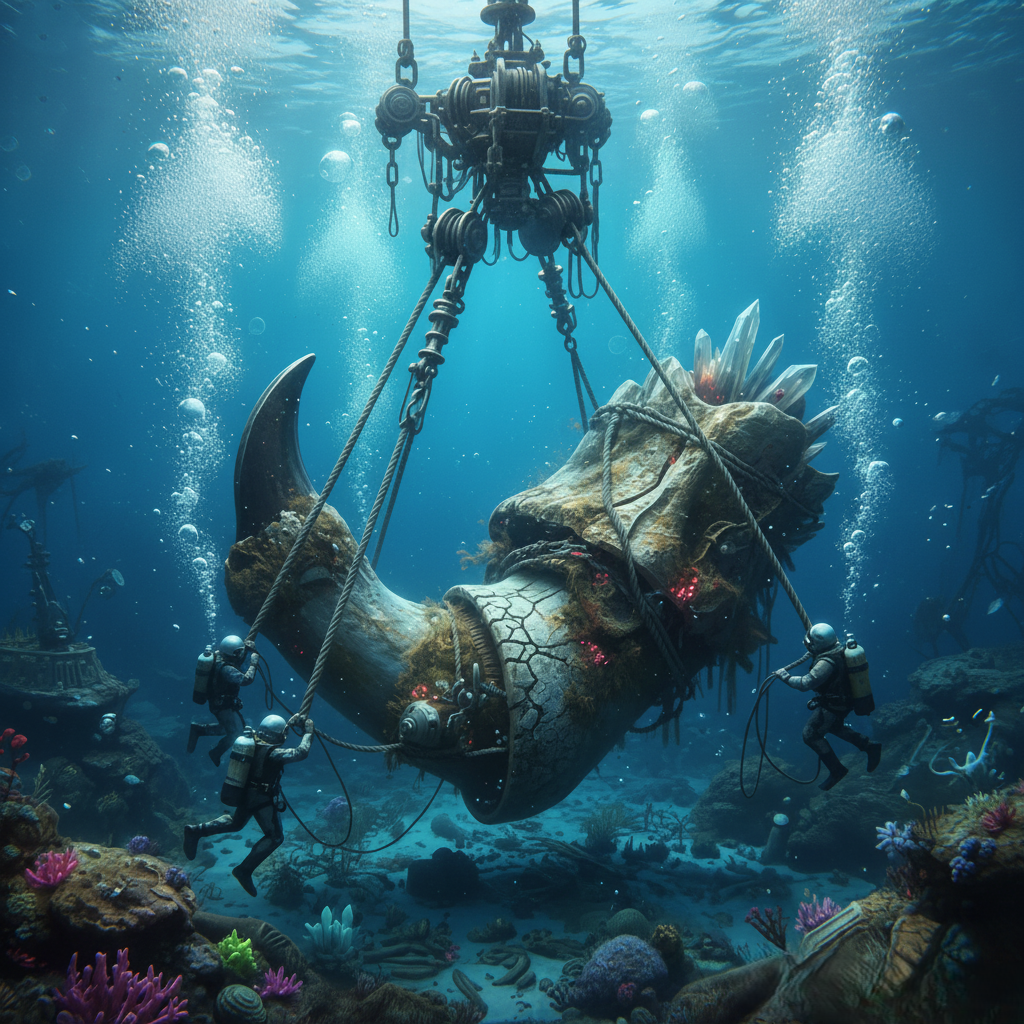 A deep-sea excavation has revealed an artifact so unusual that it is prompting experts around the world to reconsider long-held assumptions about ancient history. At a remote ocean site, divers discovered a massive horned structure partially embedded in coral formations. Now, as a specialized crane system slowly hoists the artifact toward the surface, the scientific community and the public alike are struggling to grasp its implications.