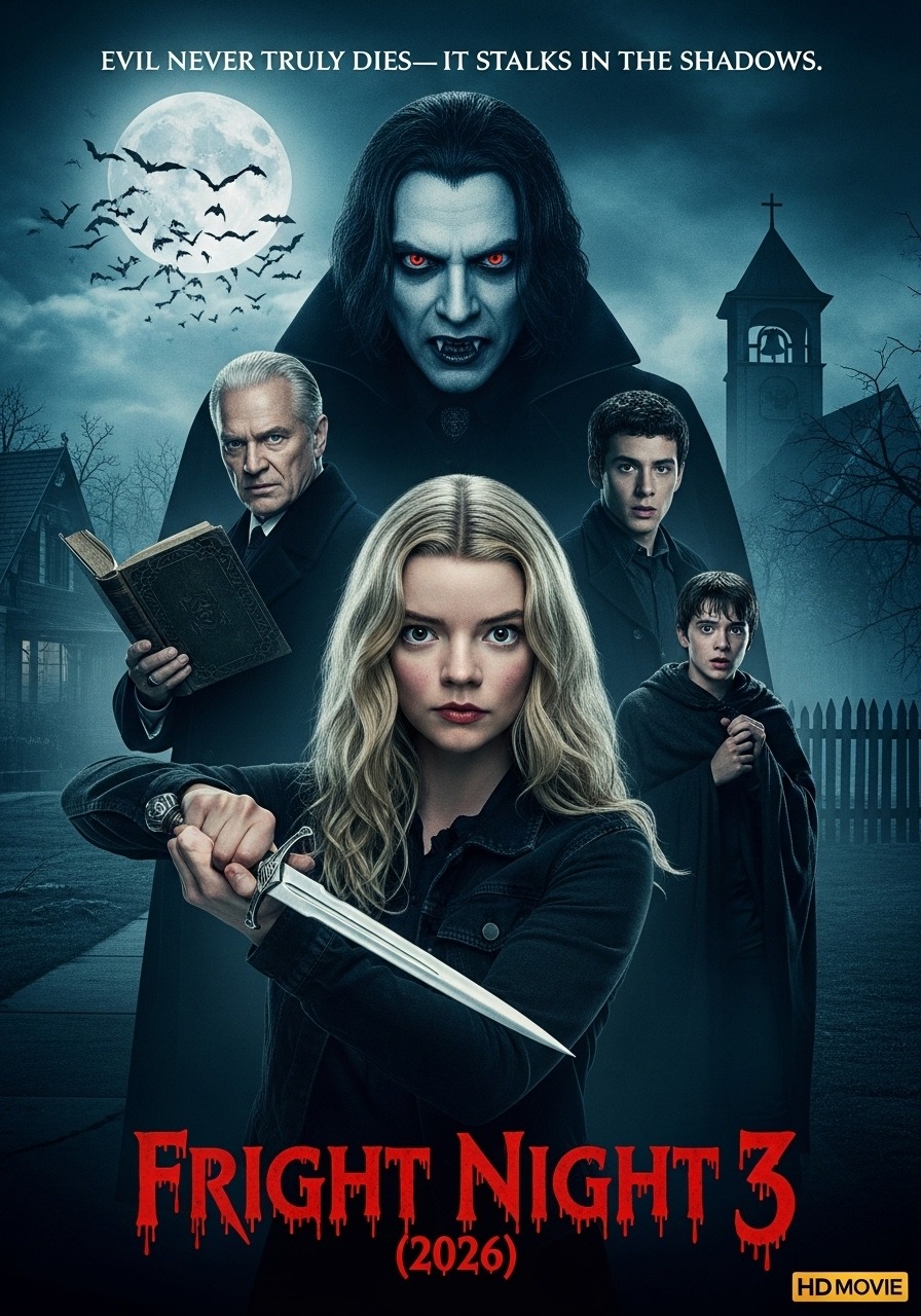Prepare to step back into a world where darkness hides in plain sight and nightmares are more real than ever. In Fright Night 3, Anya Taylor-Joy returns as Charmaine, a fearless young woman whose life has been haunted by the events of the previous films. Years after surviving the first vampire onslaught, Charmaine believed the horrors of the night were behind her—but some evils never truly died.